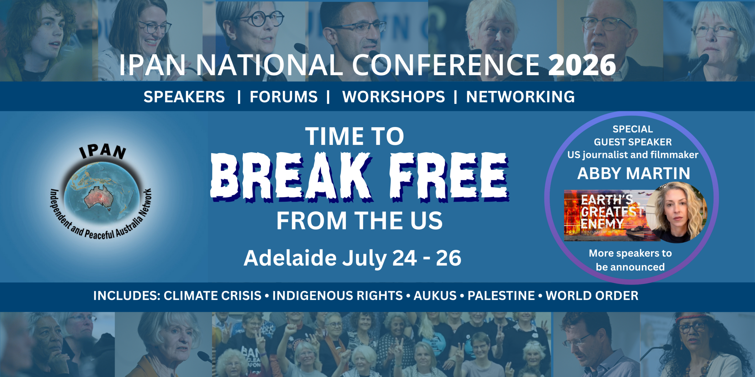 IPAN is a grassroots network of organisations around Australia – community, faith and peace groups, trade unions – and concerned individuals aiming to build public dialogue and pressure for change to a truly independent foreign policy for Australia – one in which our government plays a positive role in solving international conflicts peacefully.